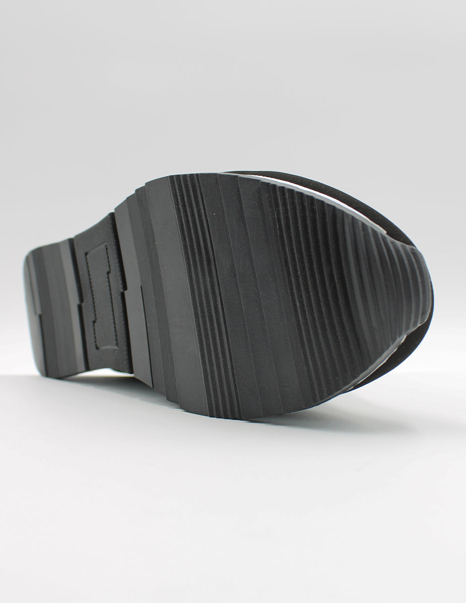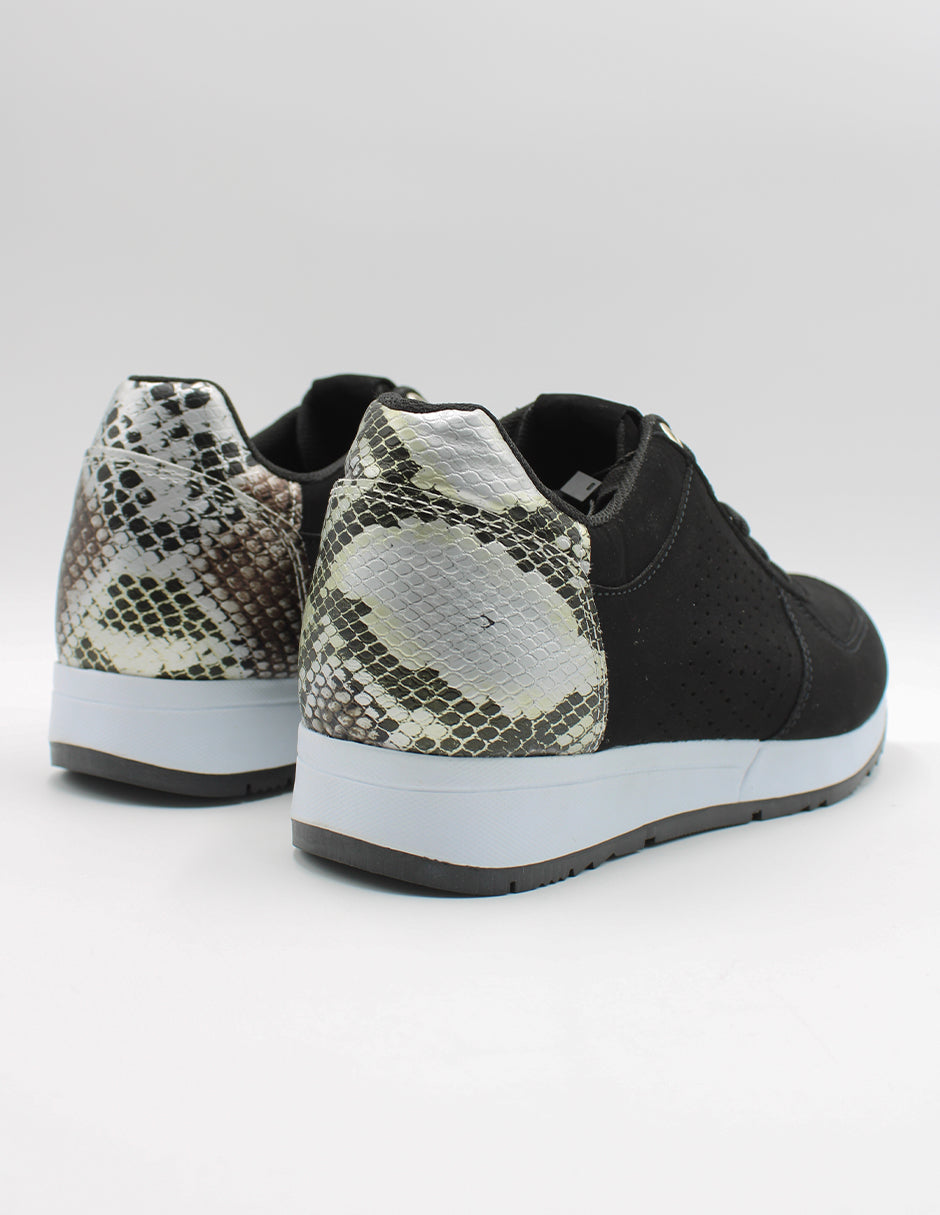 • Material: Gamuza color negro con detalles metálicos en el talón.