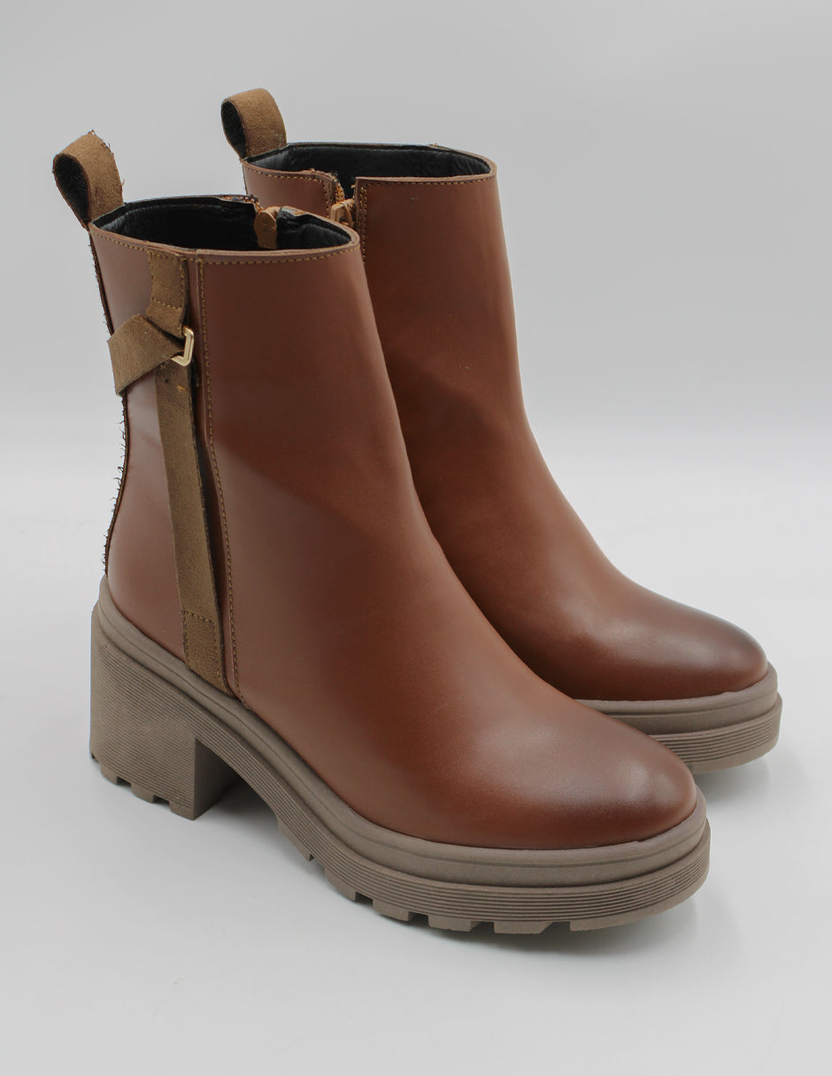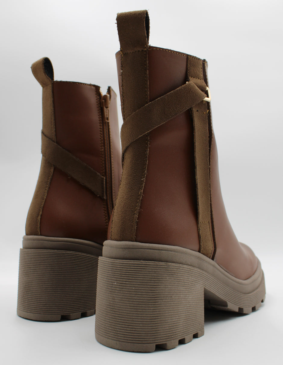Botines estilo versátil y funcional. Este modelo para mujer en piel vegana color café combina un diseño moderno con comodidad y practicidad. Su tacón grueso y suela con tracción ofrecen estabilidad y seguridad en cada paso, mientras que el cierre facilita un ajuste rápido y perfecto. Detalles como el tirador trasero y acabados minimalistas realzan su estética contemporánea, ideal para atuendos casuales o de oficina. Perfectos para la temporada de frío, estos botines son un básico atemporal que fusiona estilo y funcionalidad. Además, su fabricación con materiales sostenibles refleja un compromiso con la moda responsable.