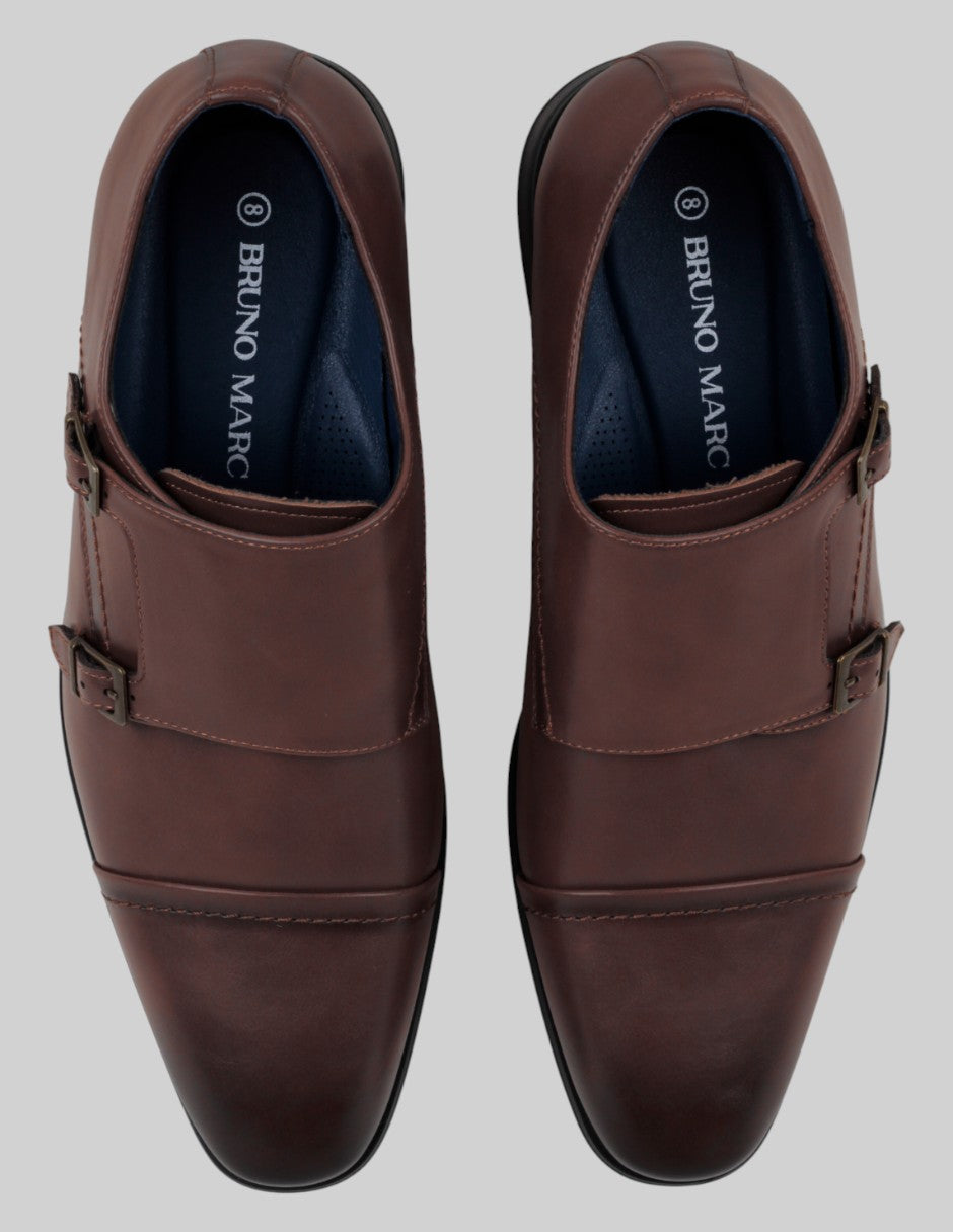Los zapatos de vestir de Bruno Marc en piel color cafe incorporan una hebilla decorativa que aporta carácter al diseño. Su ajuste con hebilla facilita el calce, ideales para oficina, juntas importantes o cenas formales. Un modelo que proyecta presencia y seguridad al caminar. ¡Agréguelos hoy y eleve su imagen profesional diaria actual!